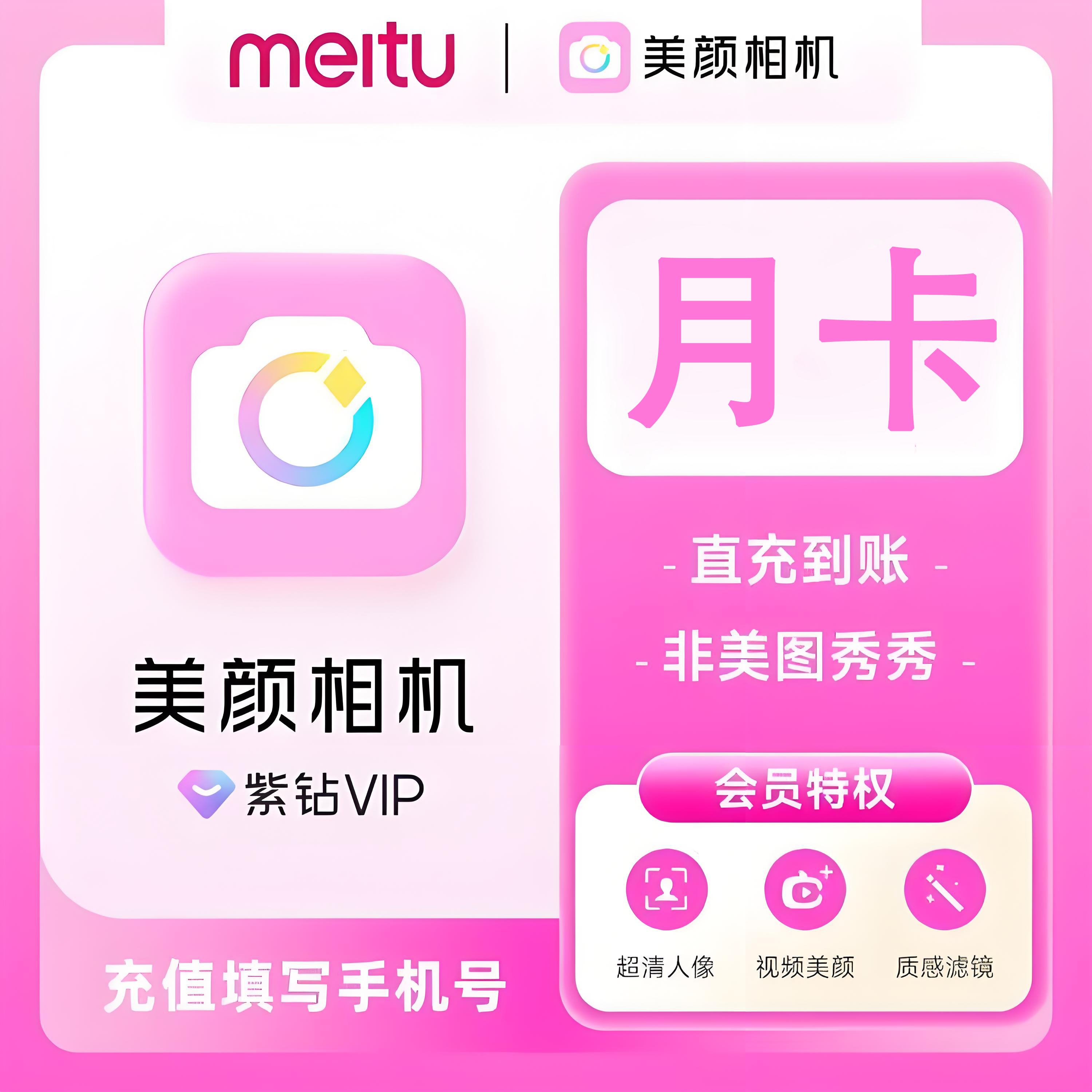 【官方直充】美颜相机紫钻会员1个月---限价14