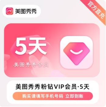 【官方直充】美图秀秀粉钻VIP会员5天---限价6.9