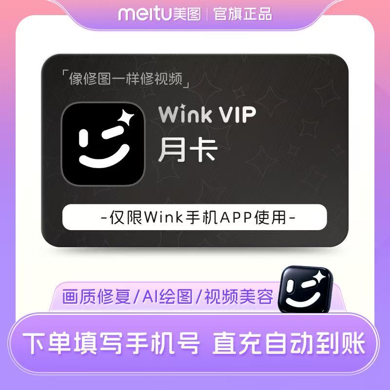 【官方直充】美图秀秀Wink会员1个月---限价18