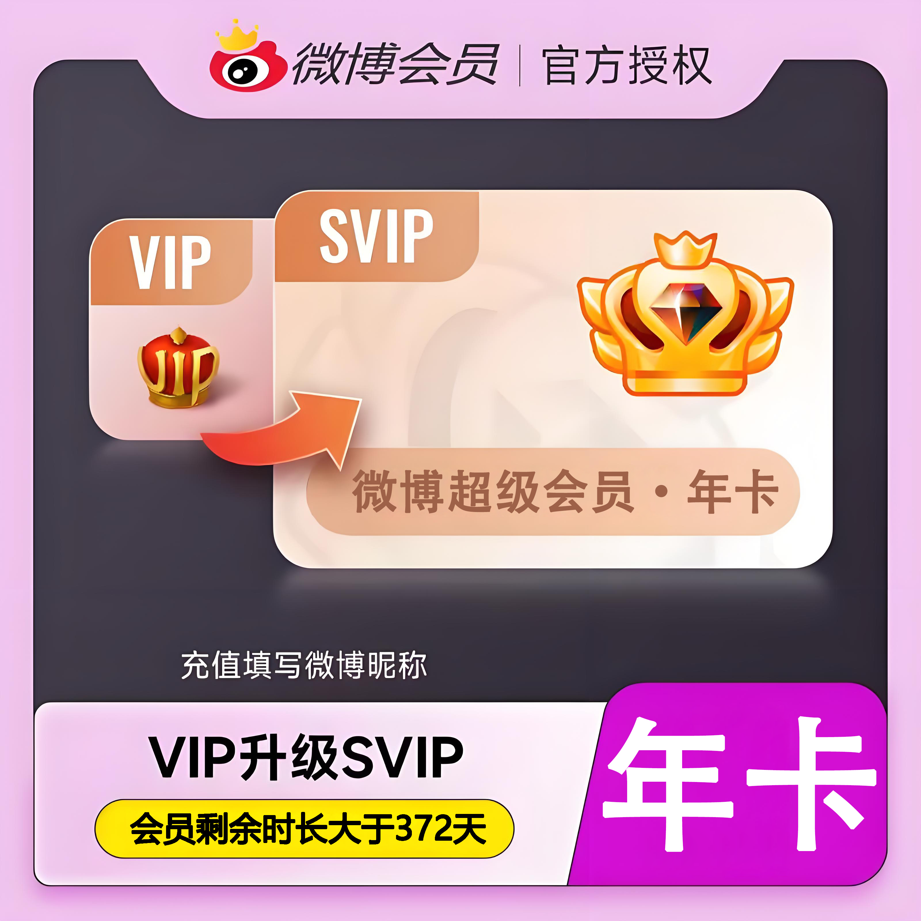 【官方直充】新浪微博VIP升级SVIP会员12个月