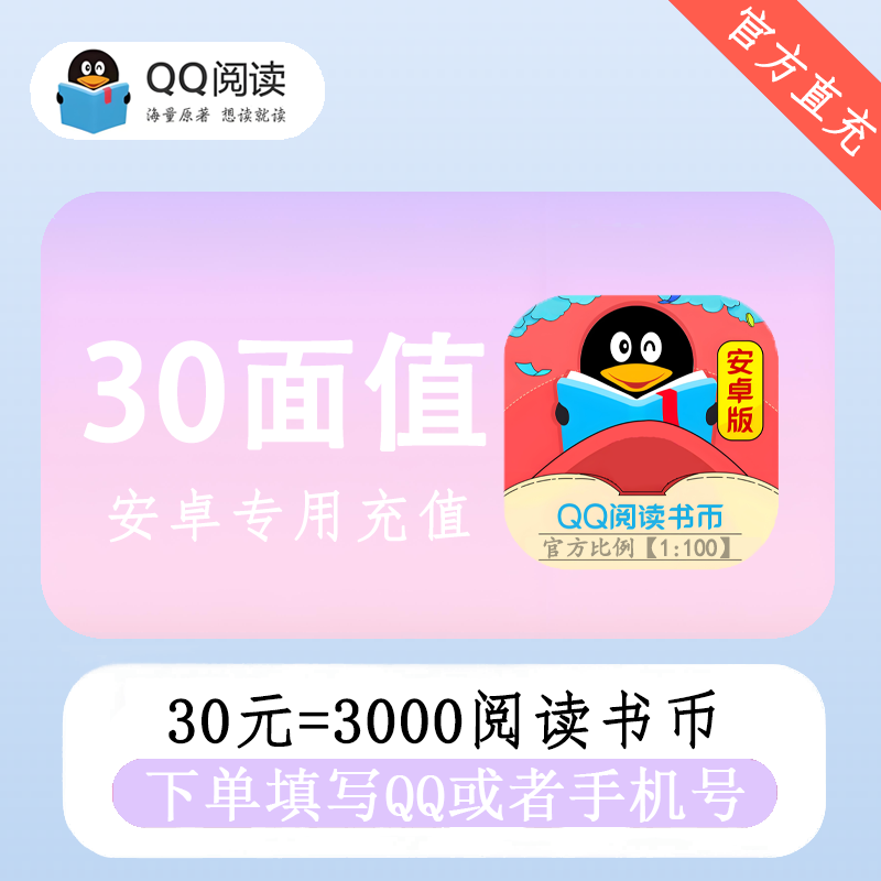 【官方直充】安卓QQ阅读书币30面值