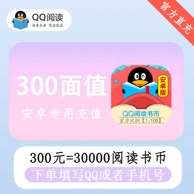 【官方直充】安卓QQ阅读书币300面值