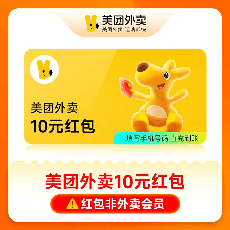 【直充秒到】美团外卖红包10元无门槛通用红包丨1天5次