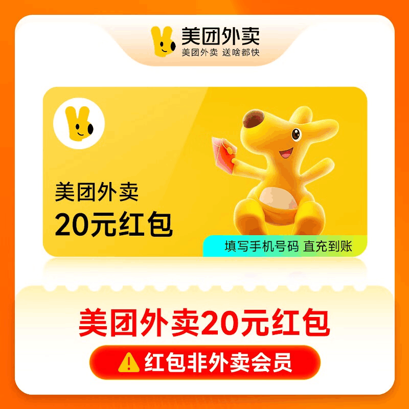 【直充秒到】美团外卖红包20元无门槛通用红包丨1天5次