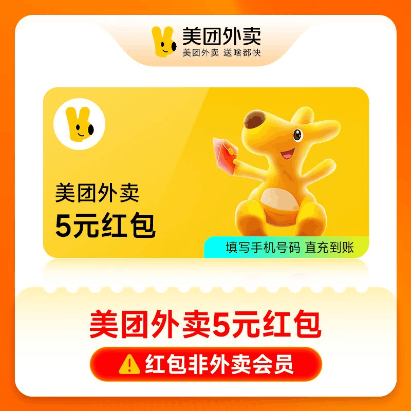 【直充秒到】美团外卖红包5元无门槛通用红包丨1天5次