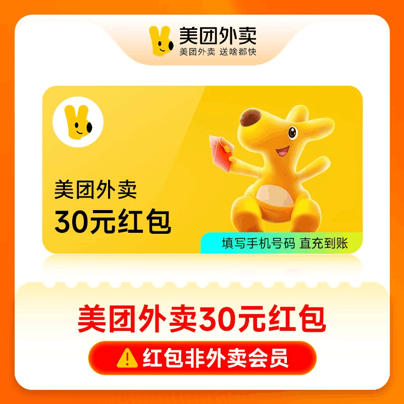 【直充秒到】美团外卖红包30元无门槛通用红包丨1天5次