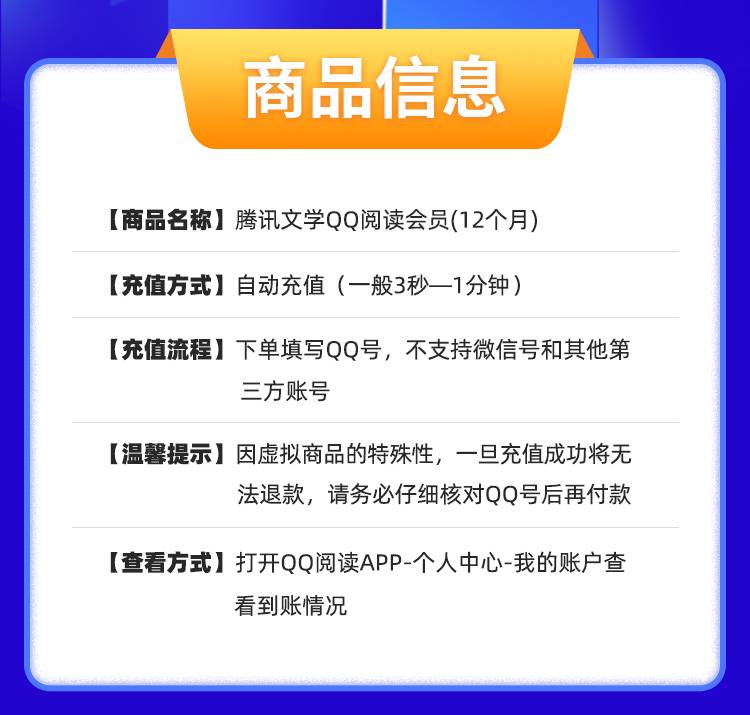 【官方直充】QQ阅读会员12个月---充手机号